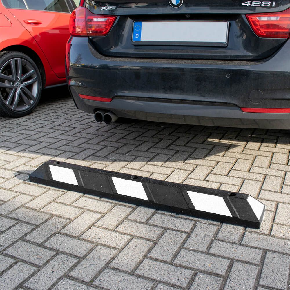 Perfect voor het markeren van parkeerplaatsen en parkeergarages. Uitstekend zichtbare parkeerstop, ook in het donker, door de gele of witte reflecterende stroken van polyurethaan.
