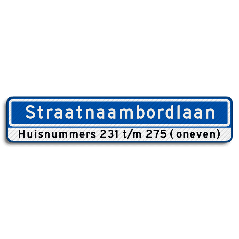 Straatnaambord 18 karakters 1000x200 mm + Huisnummers NEN 1772