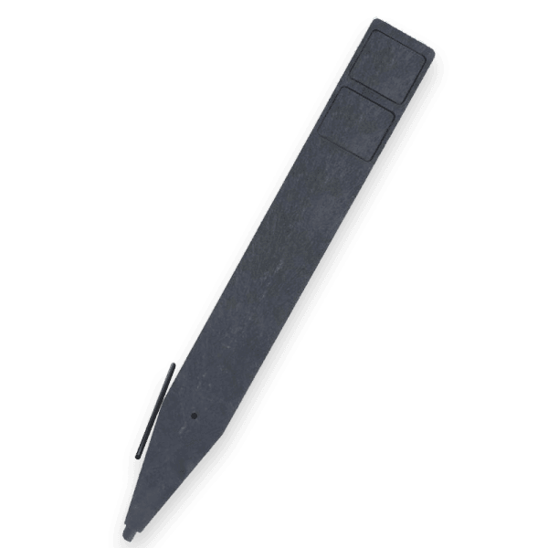 Verzwaarde huisnummerpaal van gerecycled kunststof, voorzien van 2 uitsparingen aan twee zijden voor plaatsing van o.a. huisnummerbordjes.